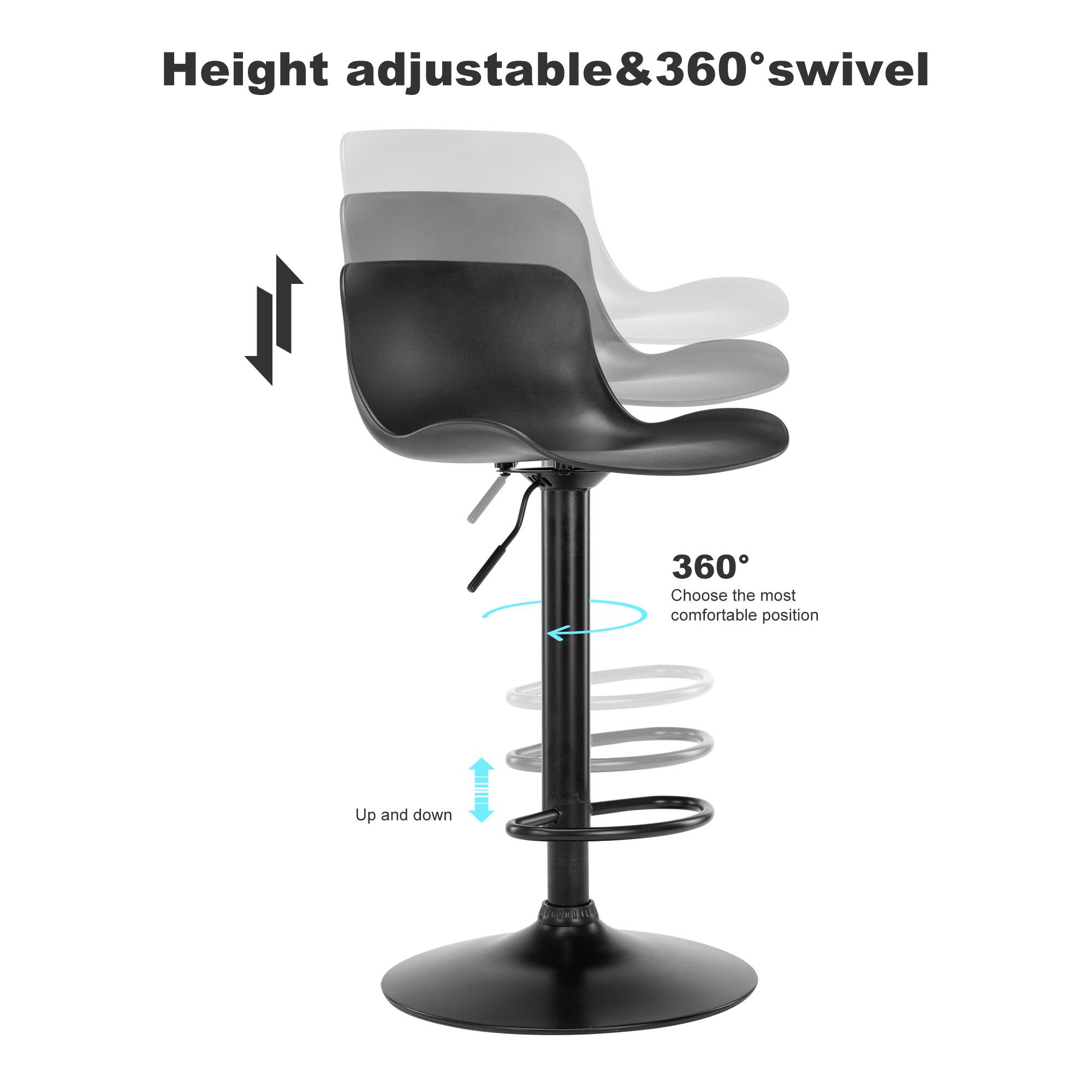 HANDSOMELY CRAFTED: : Plastic shell back and seat bring you extreme comfort and enjoyment , metal frame, powder coated base and footrest. Rubber ring at the bottom of bar stools to prevent floor scratches.