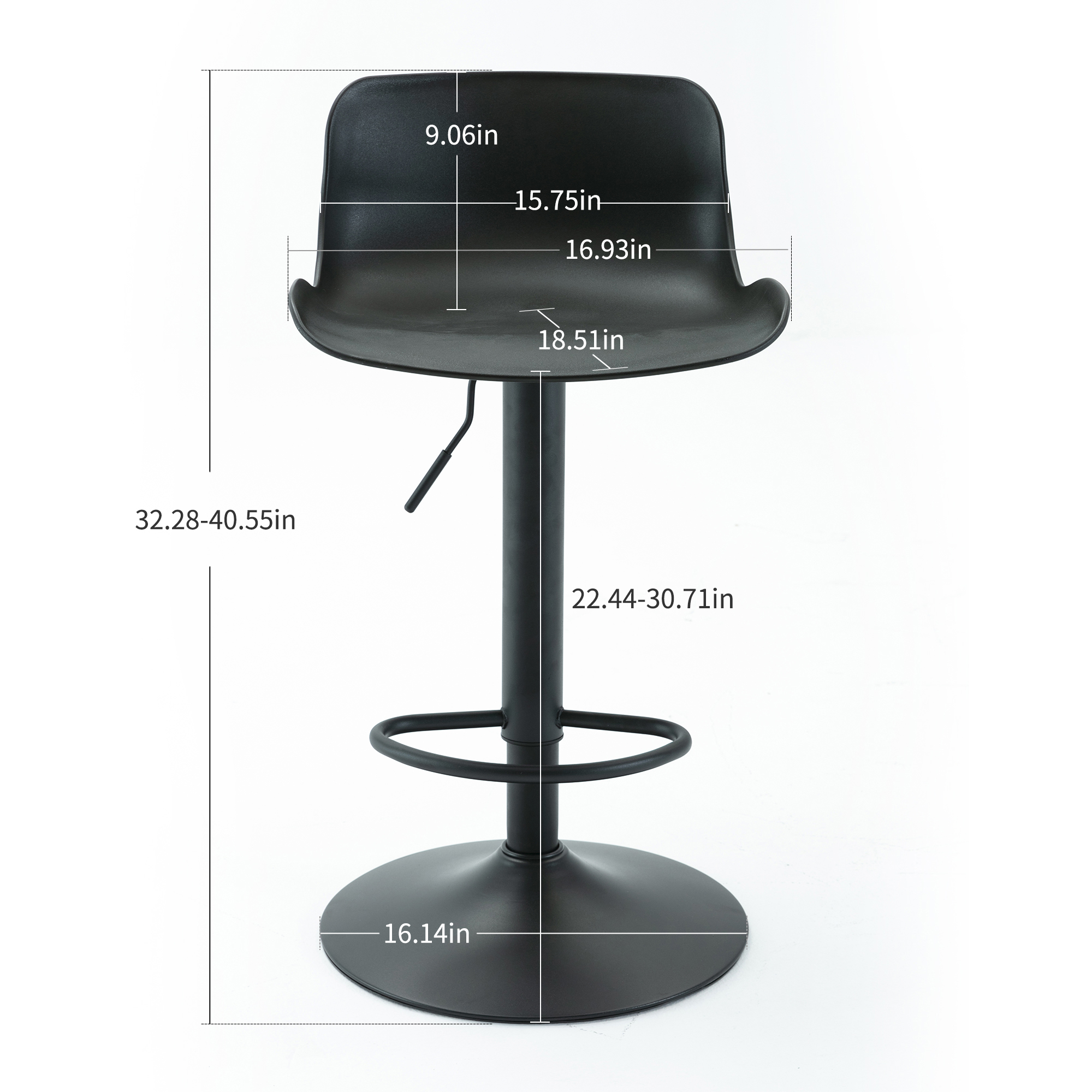 Dimension and Weight limit: Overall dimension: 16.93”(W)”×18.51”(D)×32.28-40.55”(H) base diameter 16.14”. WEIGHT LIMIT: 280 lbs.The bar stool suitable kind of occasion, dining kitchen room, bar and so on.