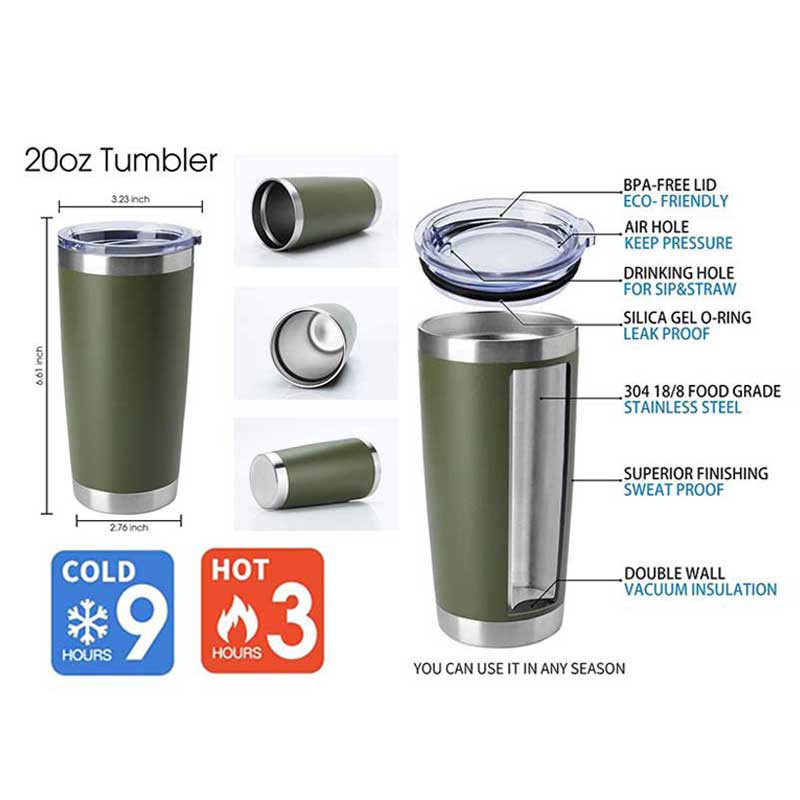 • Insulates hot beverages up to 6 hours, cold beverages up to 24 hours!