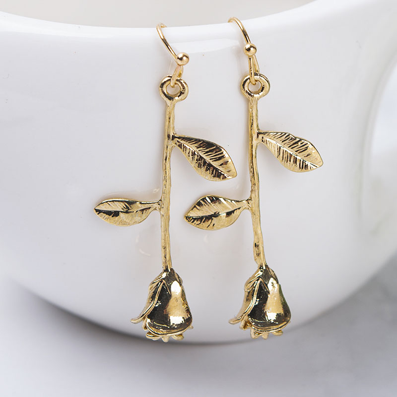 Rose Gold Rose Earrings, Rosebud Earrings, Miniature Earrings, Rose Earrings Symbolic Botanical Jewelry Anniversary Romantic Gift