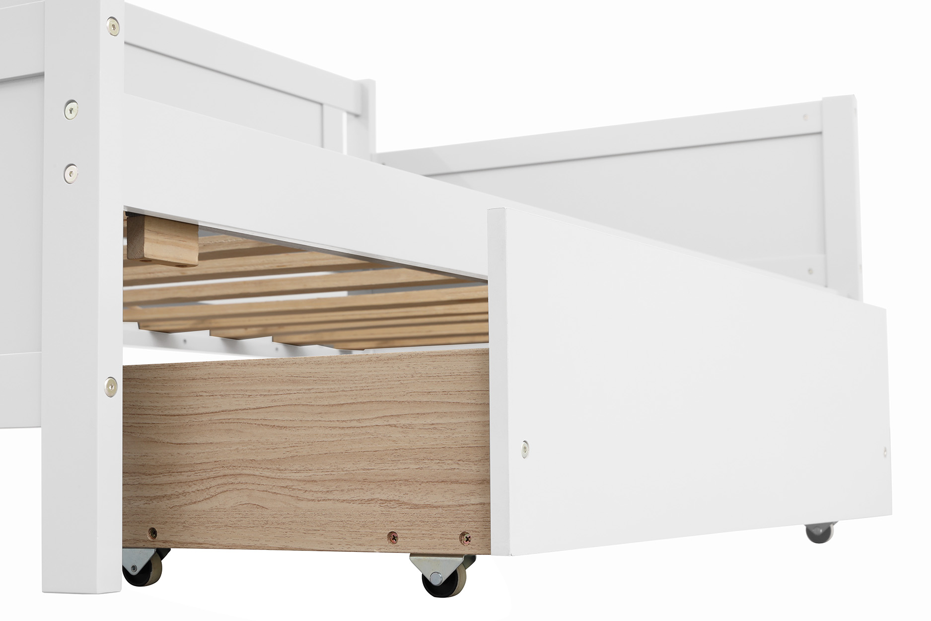 Material: Main Structure - Pine, Rails/Slats - Plywood, Drawer Panels - Particleboard, Bed-end Panels - MDF