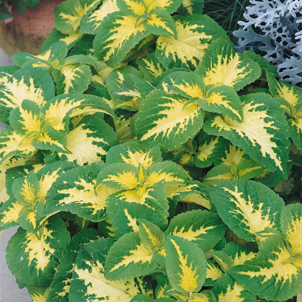 Coleus (Coleus Wizard Jade) - Start Coleus seeds for this exotic foliage plant that never disappoints! Wizard Jade has ivory at the center of the leaves and greens around the edges. It's a beautiful plant for a shade that can be mixed in containers with other shade-loving plants.