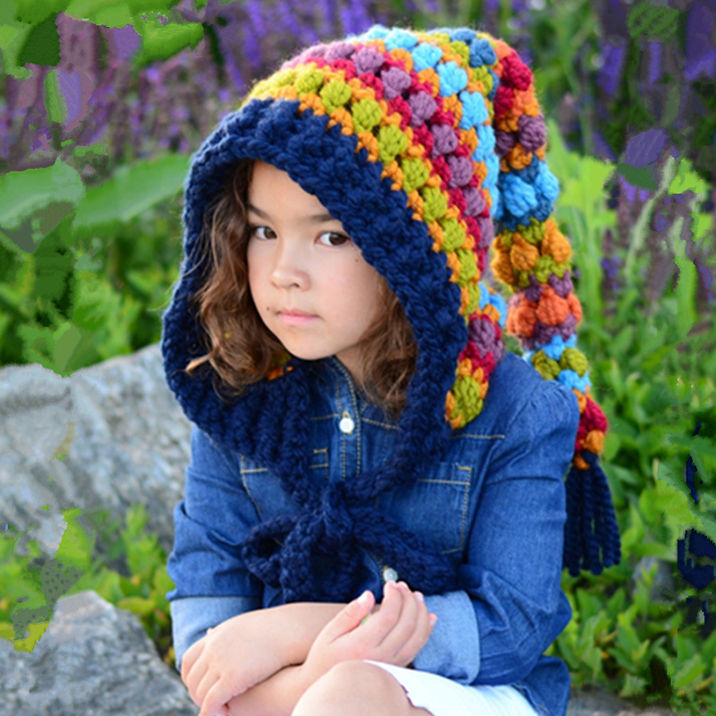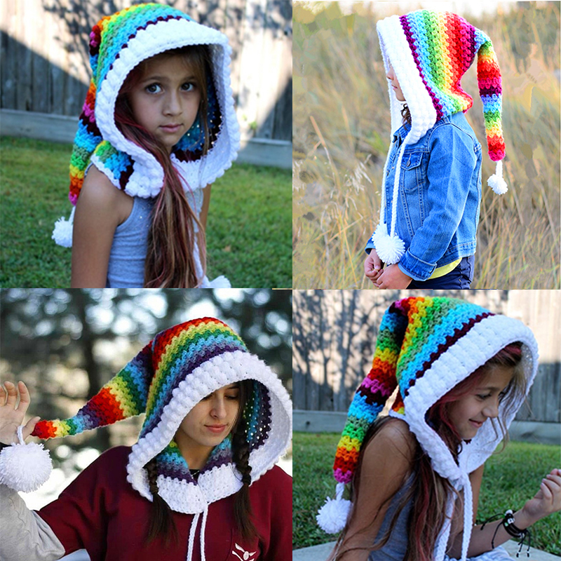 Boy & GirlHand knittingColors: White-Rainbow, Blue-Rainbow, GreySize: 18.9*20.8 In(48cm * 53 cm)Applicable age: 2-8 years oldSeason: Autumn / Winter