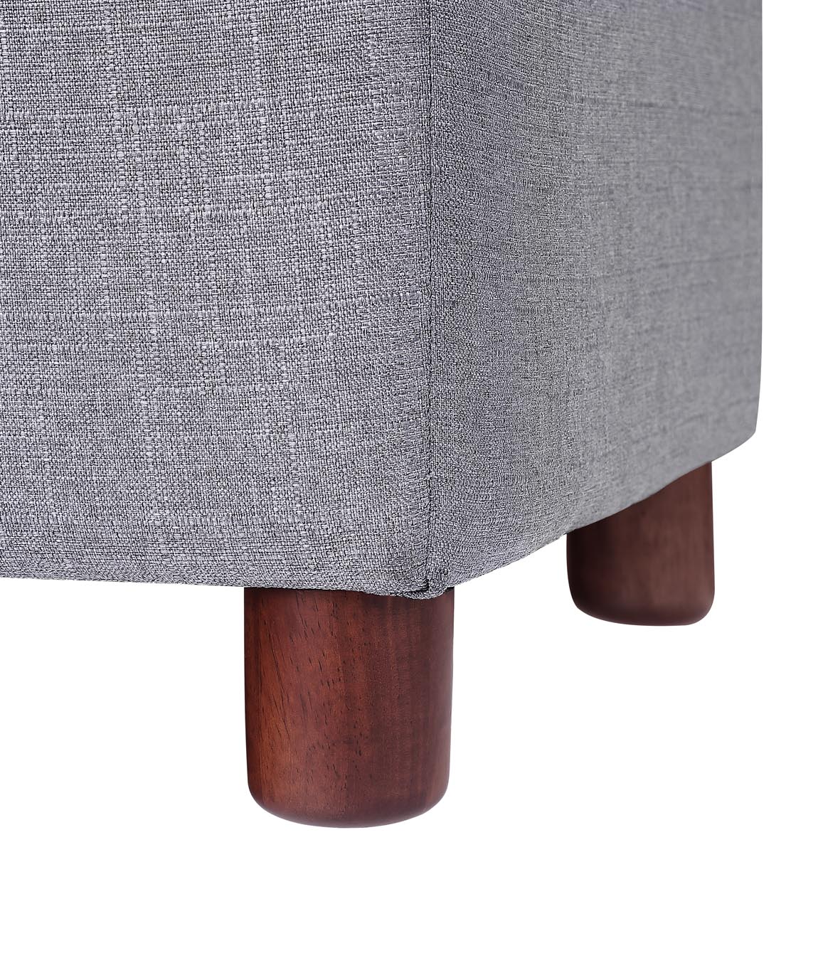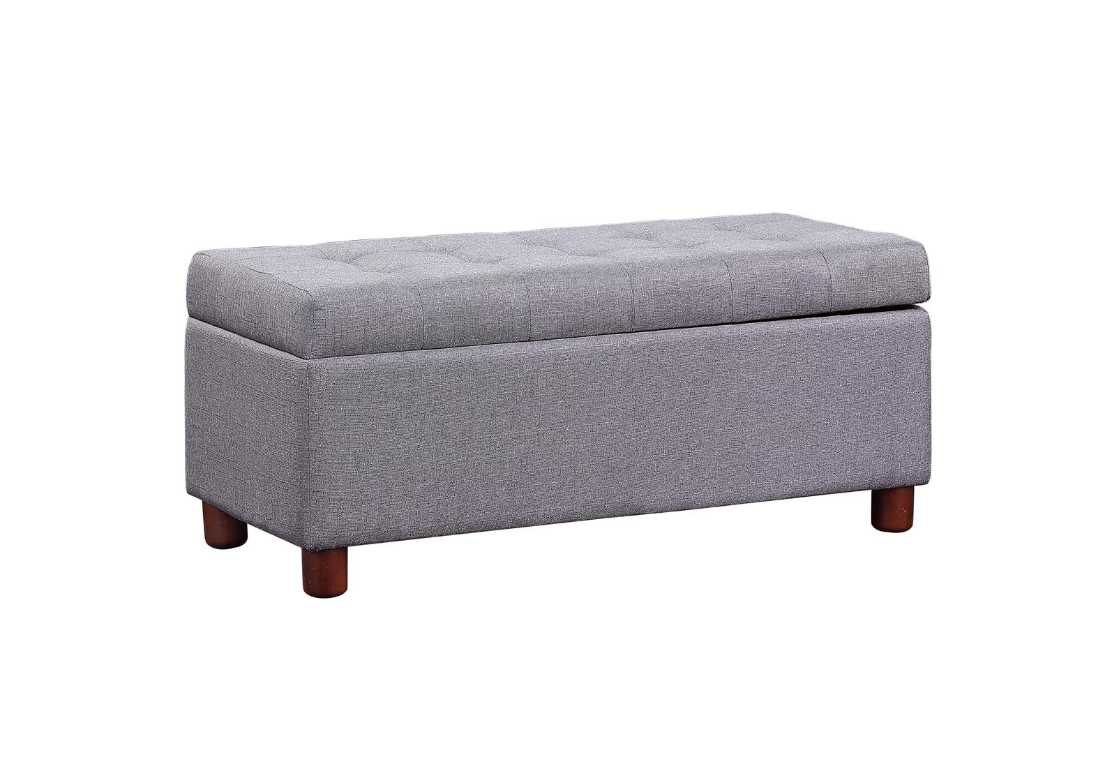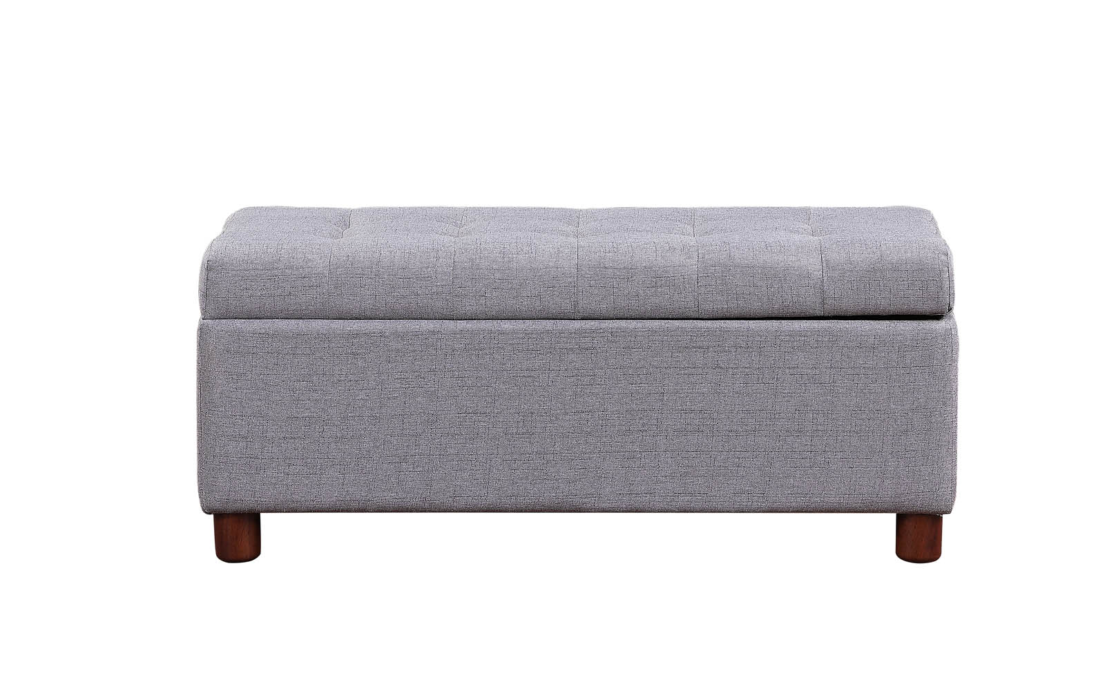 Versatile in both function and design, this clean-lined storage bench features a button-tufted top that lifts to reveal a convenient compartment to tuck away blankets, board games, and beyond. Crafted with a solid acacia wood frame, this piece measures 17.71'' H x 38.98'' W x 16.53'' D overall and supports up to 440 lbs, making it perfectly proportioned to offer seating for two. Neutral linen upholstery envelops the bench for an understated look, while cylindrical feet below sport a natural wood grain finish for a hint of warmth. Assembly is required.