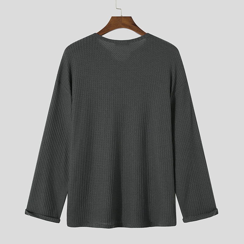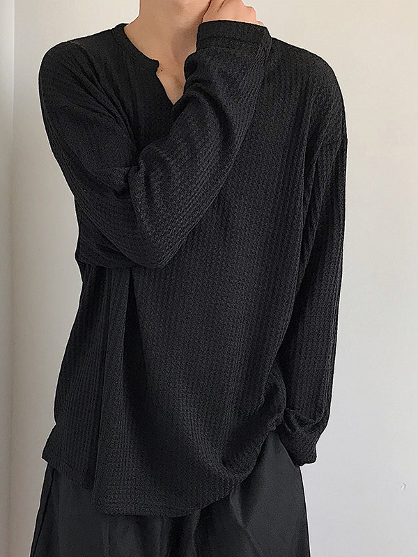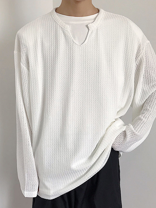 Mens Casual V-neck Pullover Long-sleeved T-Shirts SKUH76207