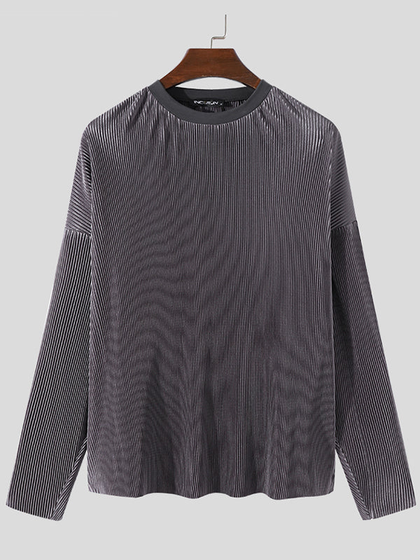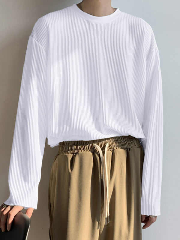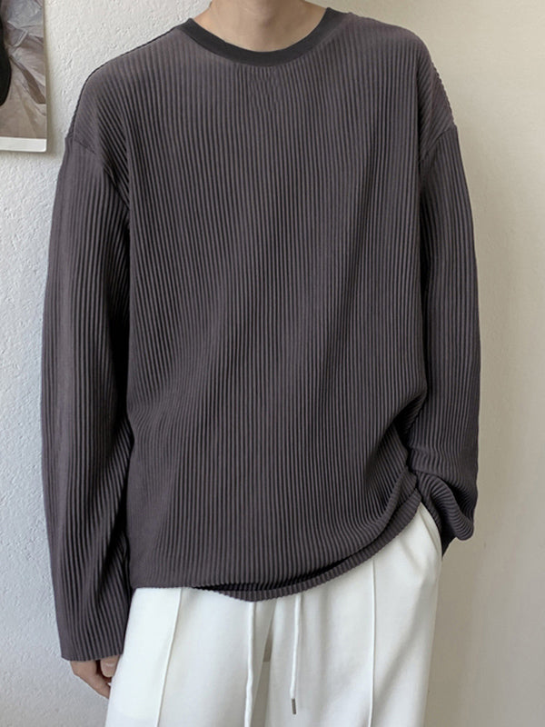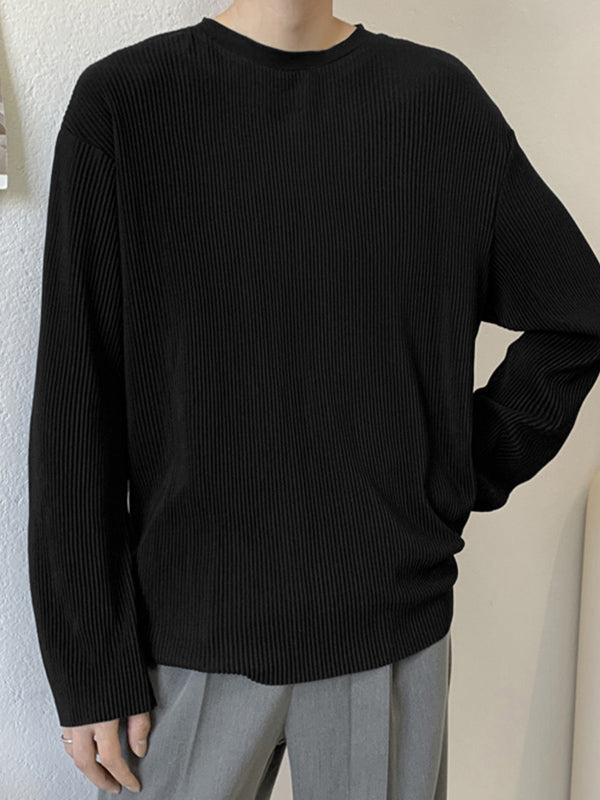 Mens Pleated Loose Long-sleeved T-shirts SKUI70574