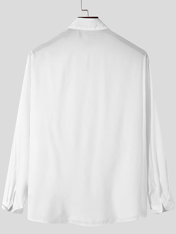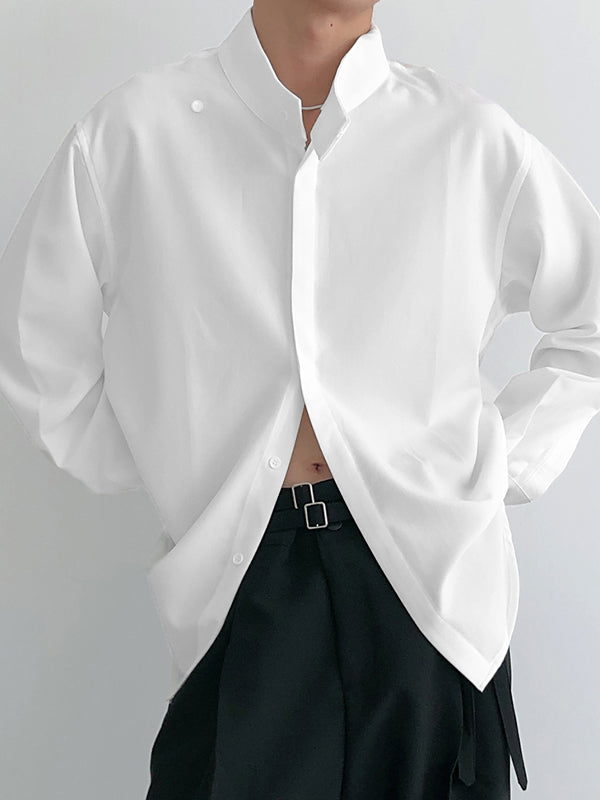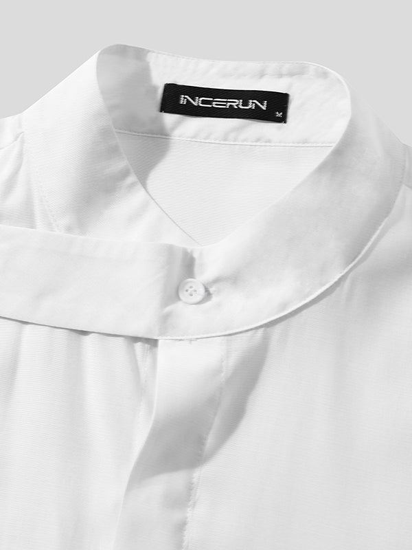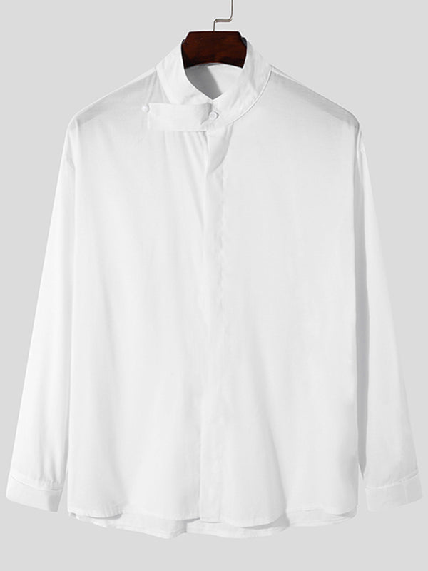 Mens Stand Collar Solid Color Long Sleeve Shirts SKUI65522
