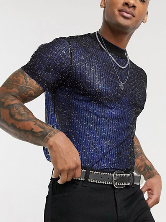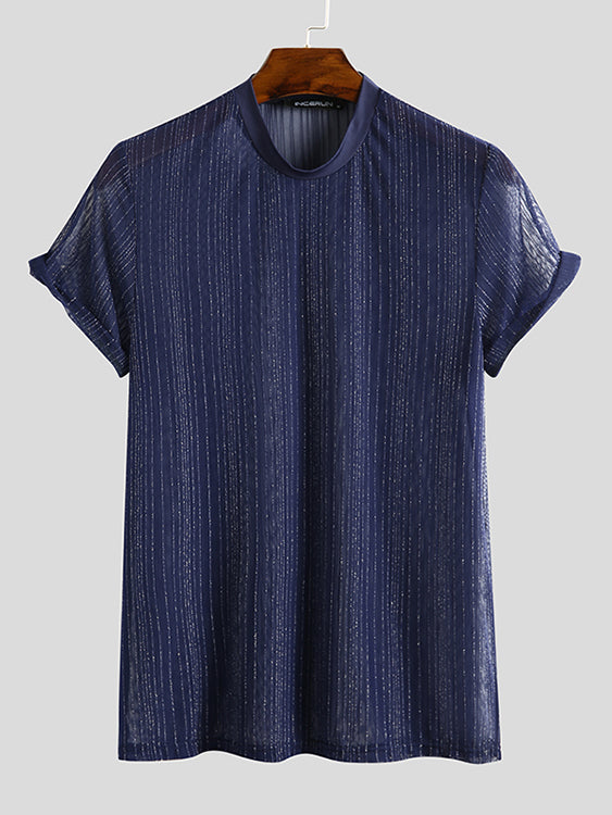 Mens Striped Mesh See Through T-Shirts SKUE87900