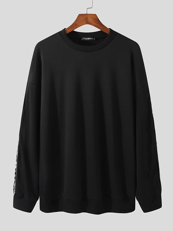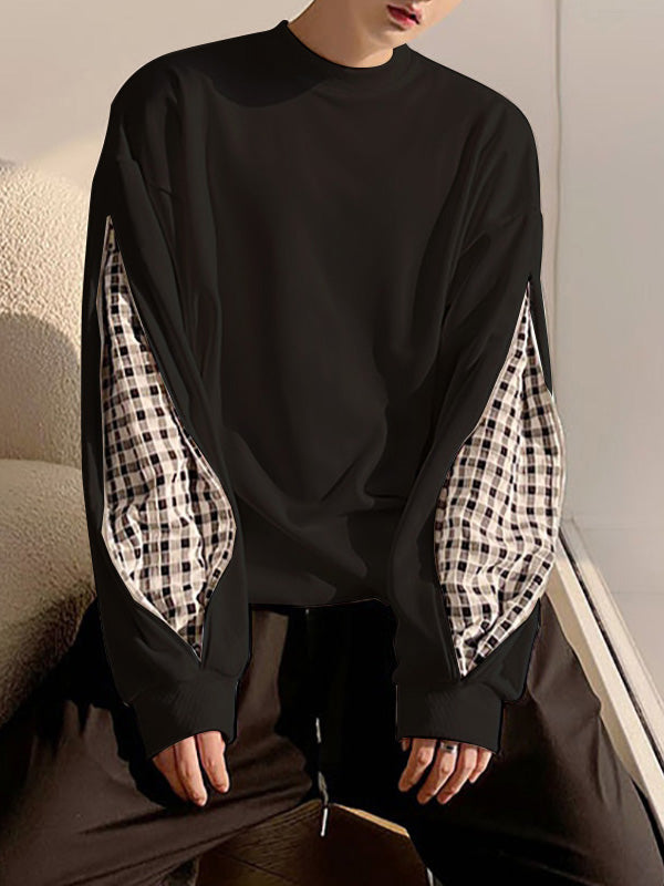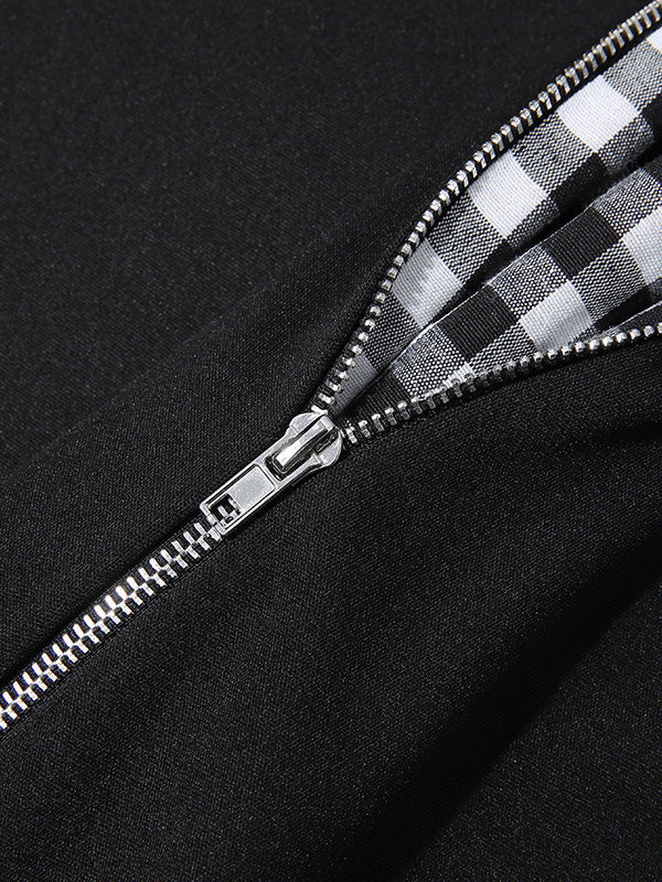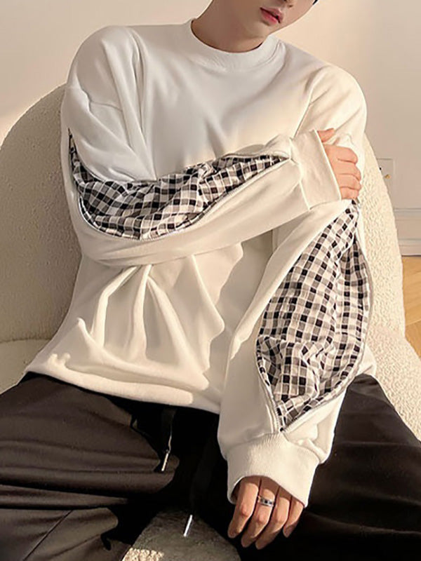 Men's Zip Sleeve Patchwork Plaid Long Sleeve Sweatshirts SKUH96185