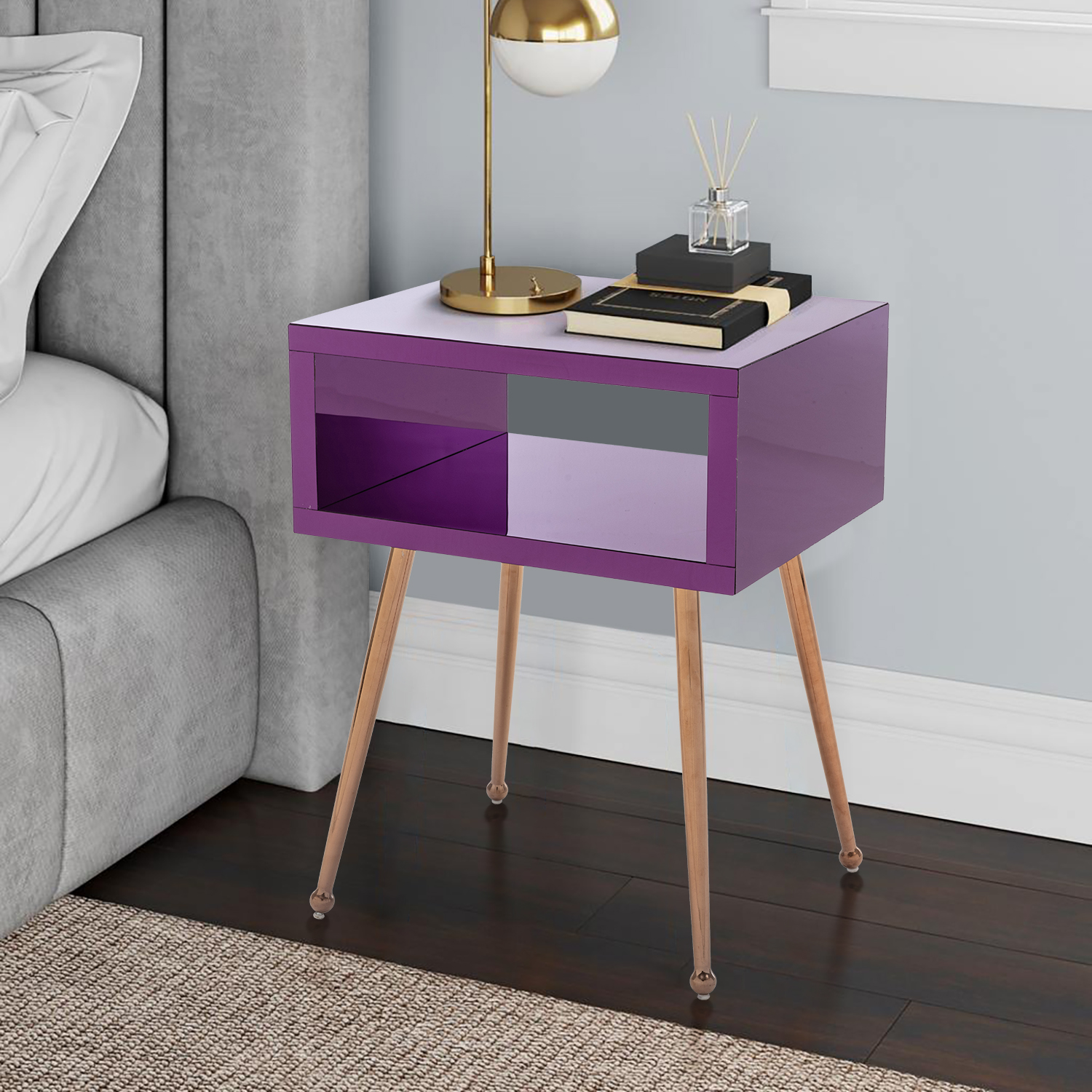 Night Stand Accent Table with Metal Legs, Mid Century Mirrored End Table Accent Nightstand Side Table for Bedroom, Living Room, Dining Room Furniture (Plum Purple)