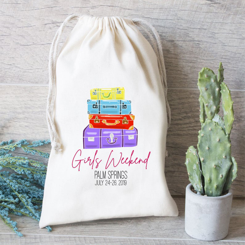 Girls Weekend Favor Bag, Hangover kit bag, Suitcase Favor Bag, Bachelorette Party Favor, Personalize Drawstring Bag, Greenery