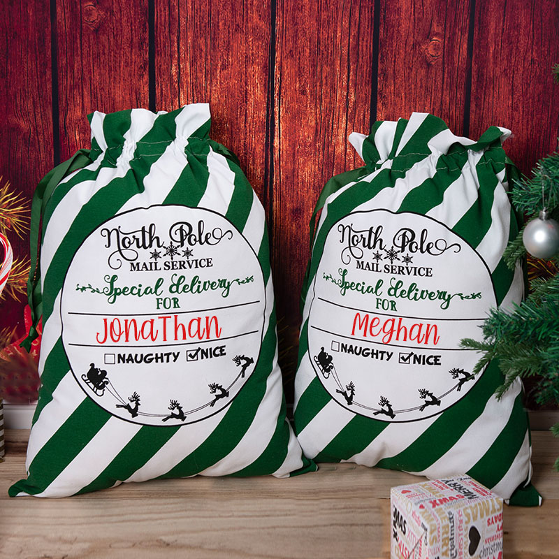 Personalized Class-Stripe Christmas Santa Sacks
