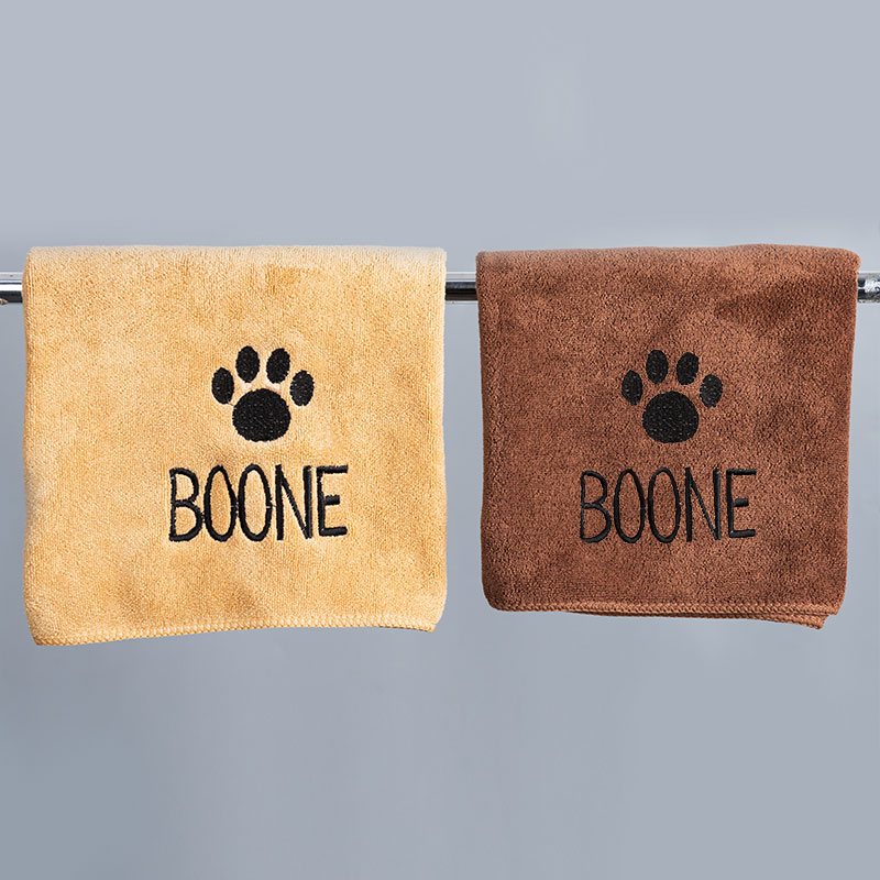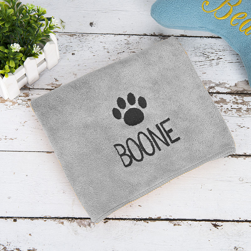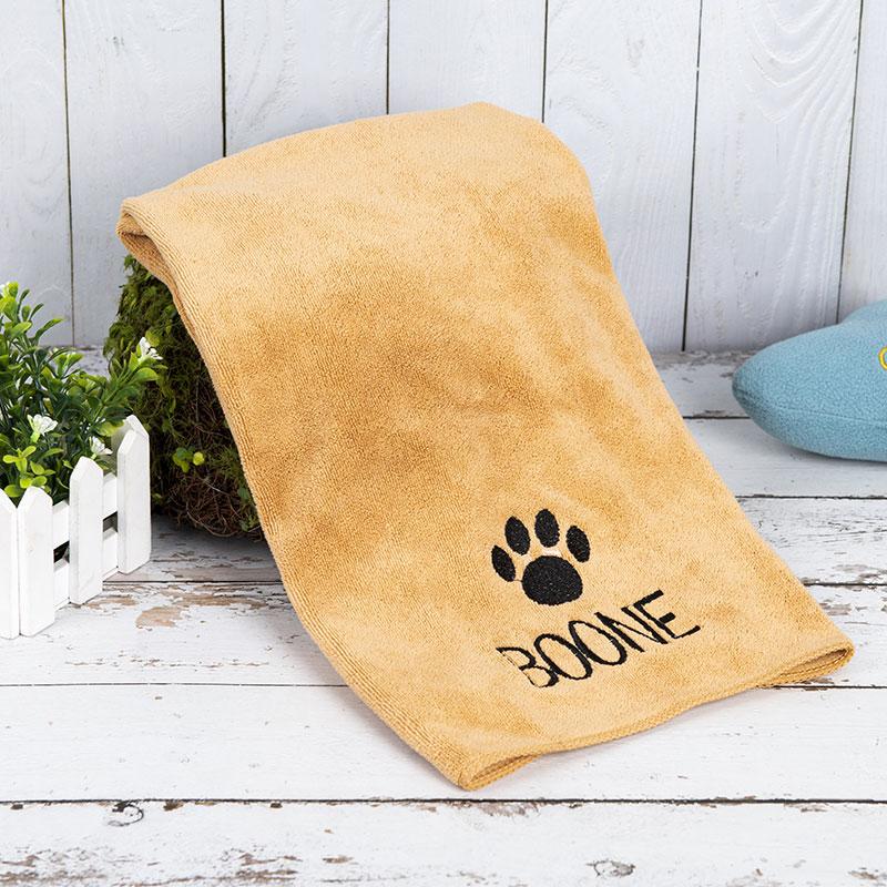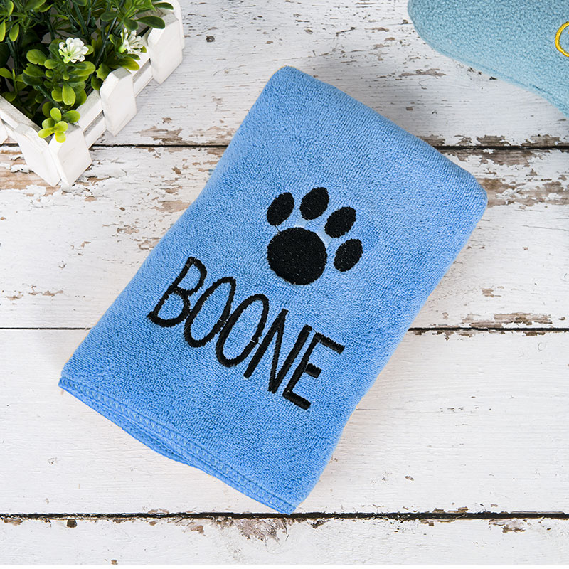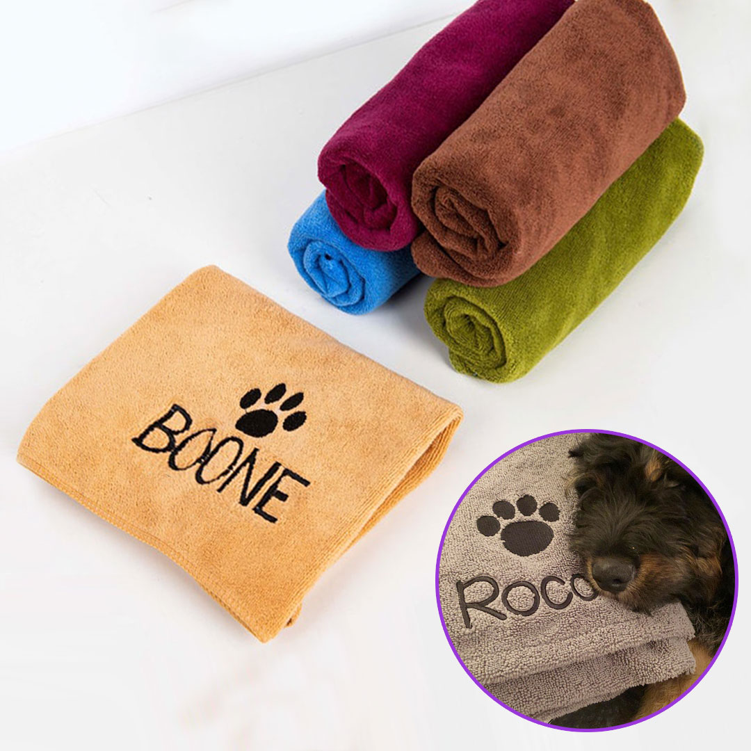 Paw Print Pet Towel with embroidered paw print and your pet's name.Measures 75 cm* 35cmPolyamide fibre (Polyester, nylon) - ultra absorbent microfiber!Please leave name for personalization