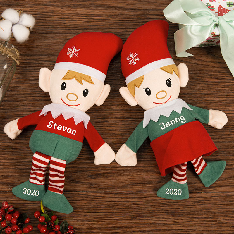There’s no gift better than an adorable item personalized with the receiver’s name! These huggable stuffed elves can be personalized with the name in gold across the front of the elf.