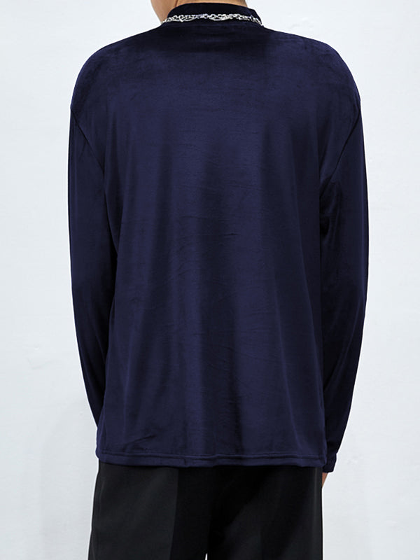 Mens Velvet High Neck Long-sleeved T-Shirts SKUI44053