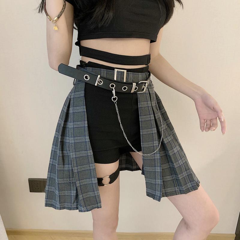 ウエストチェーンが不規則な中空のゴシックチェック柄スカートショーツ