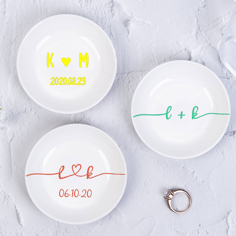 These beautiful porcelain dishes are the perfect place to store your engagement/wedding rings and other everyday jewelry. Every sticker is designed & then cut on high-quality vinyl before being permanently sealed to the dish.