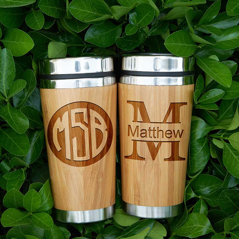 This personalized engraved travel mug is made from stainless steel and wrapped with bamboo fiber, which is perfect for both cold and hot drinks - double wall insulated.It fits in most car cup holders perfect for taking on the road, to the office, or anywhere!It is a great gift for any occasion.