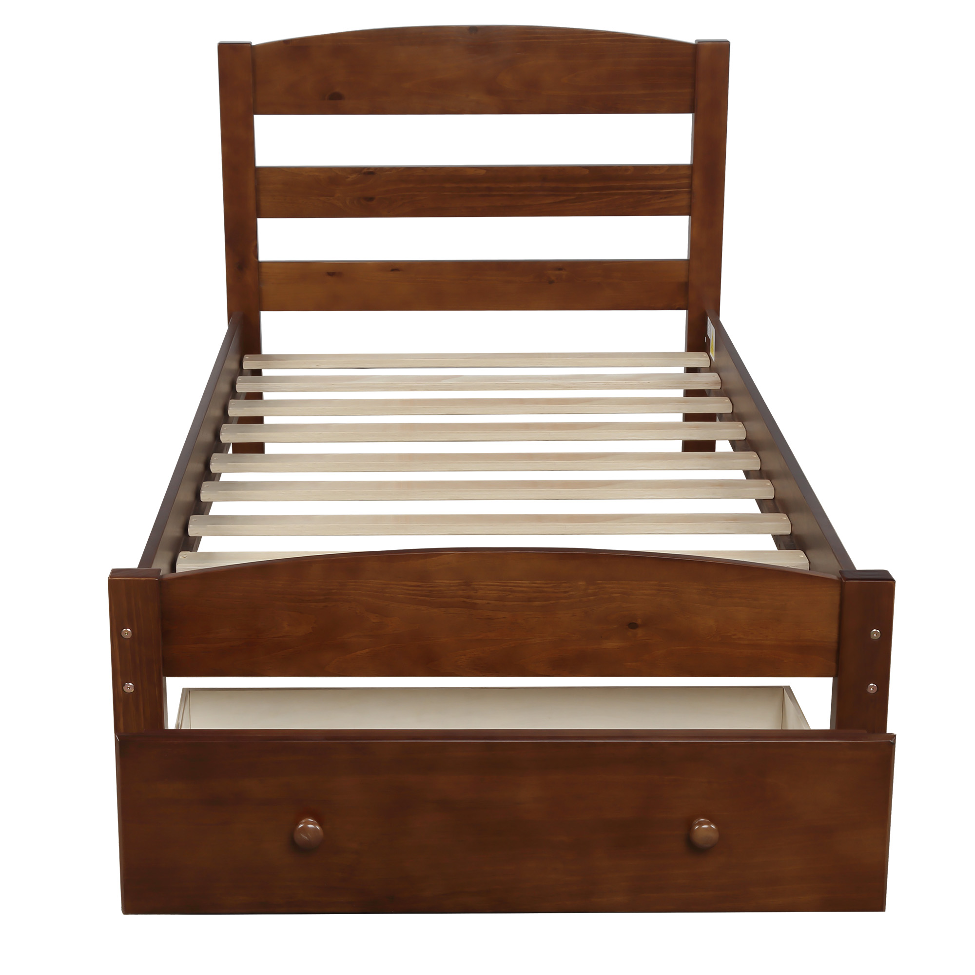 【Solid Wood Construction】 100% quality tested pine wood frame built for heightened durability and stability complete with a solid wood built-in slat foundation for reliable mattress support.